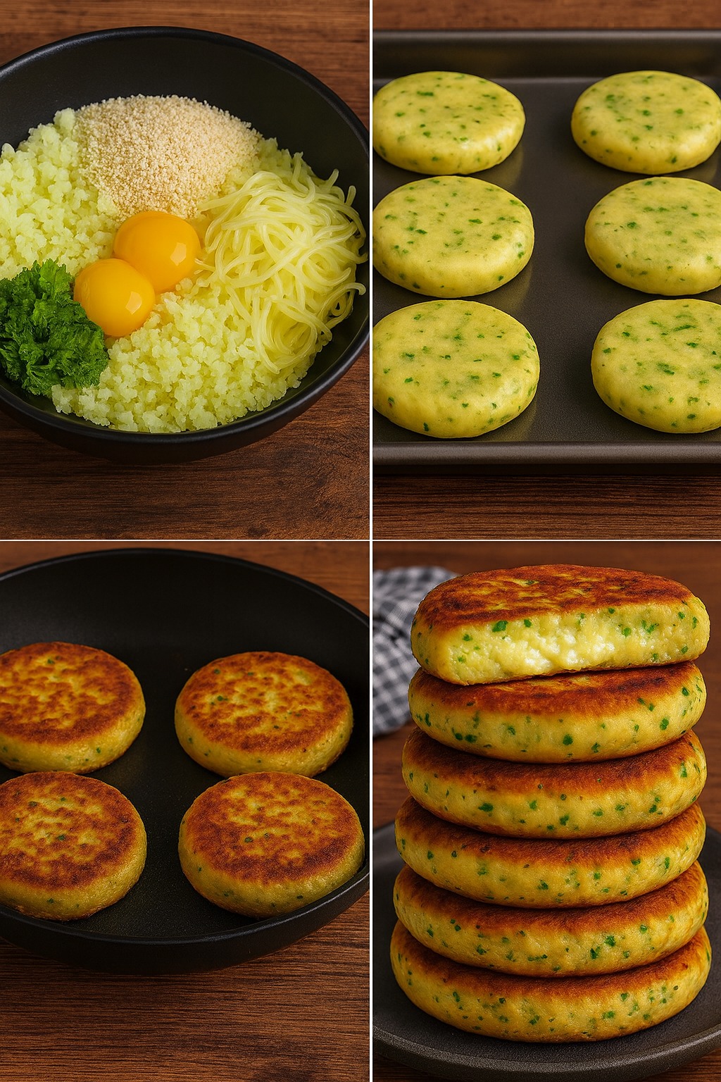Dela blandningen i lika stora delar och forma dem till platta friterade kakor i önskad storlek.