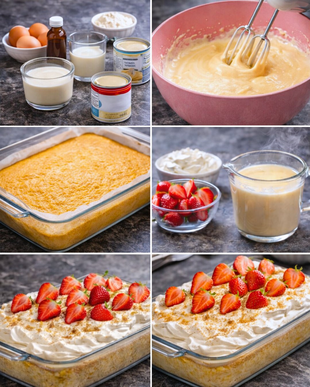 3ïžâŁ TillsĂ€tt den osötade kondenserade mjölken, mjölken och vaniljen. Blanda vĂ€l tills det Ă€r slĂ€tt.