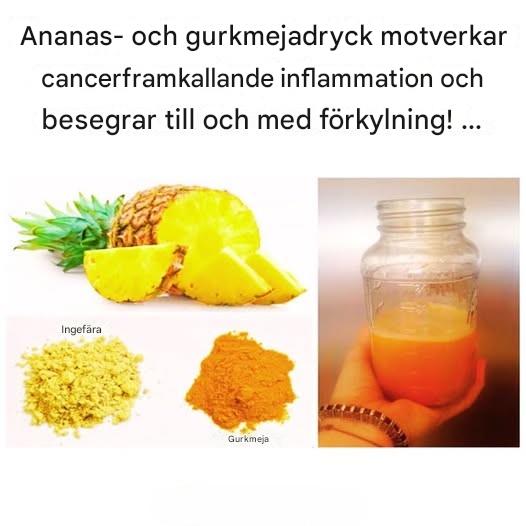 Ananas, gurkmeja, ingefära och citron har alla två saker gemensamt. De är alla ingredienser som har visat sig ha både antiinflammatoriska och antitumöregenskaper. Det säger sig självt att en blandning av dessa ingredienser skapar en kraftfull, läkande dryck. Denna dryck bekämpar inte bara cancerceller och minskar inflammation, utan den är också fantastisk på att hjälpa dig att återuppliva och föryngra din kropp. (Uppdaterad 12 april 2023)