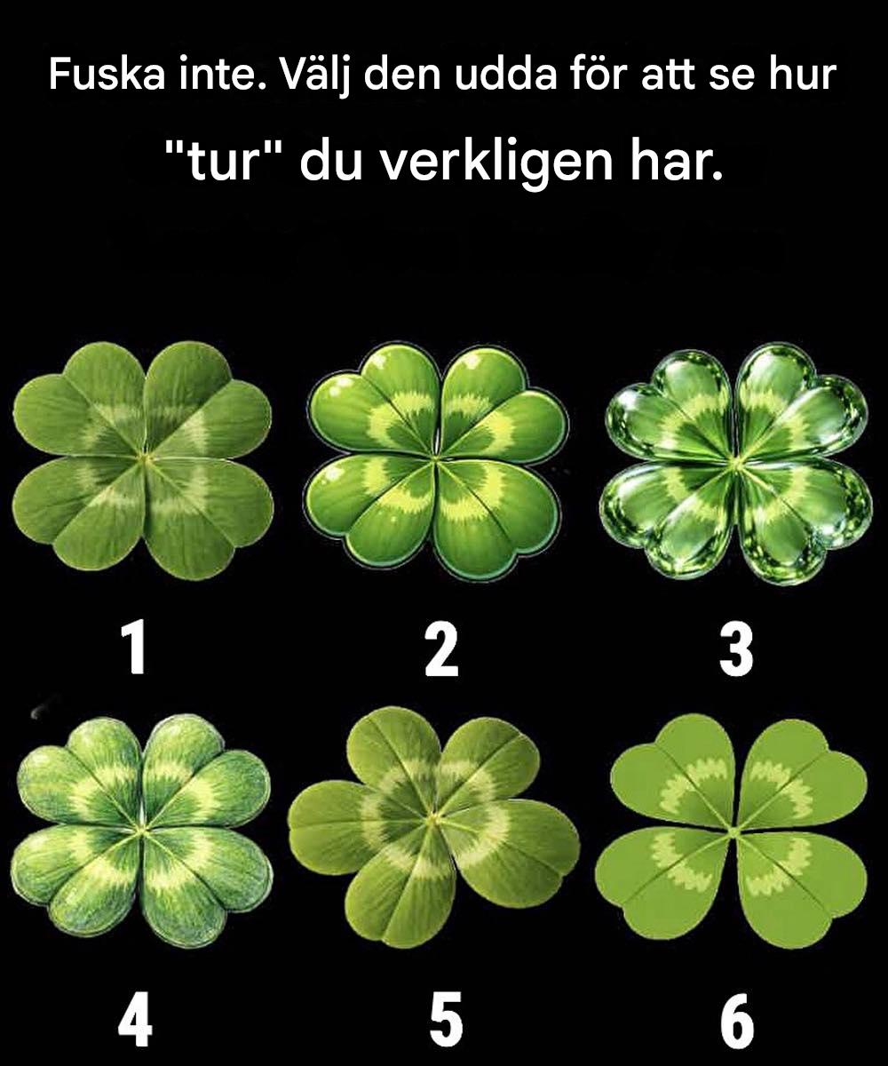 Vid första anblicken ser bilden ut som ett enkelt spel: sex klöver, alla lite olika, och en utmaning – välj den udda. Men under detta lekfulla test finns något mer spännande. Det handlar egentligen inte om tur… det handlar om perception, intuition och personlighet.