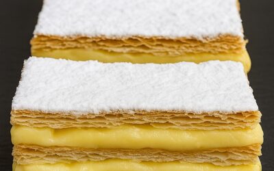 3 rektangulära ark smördeg (hemgjorda eller köpta) Florsocker (för att pudra) Kräm: Mjölk Äggulor Socker Majsstärkelse eller mjöl Vanilj Smör…