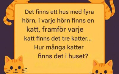 Gåta: Det finns ett hus med fyra hörn. I varje hörn finns en katt, och framför varje katt finns tre…