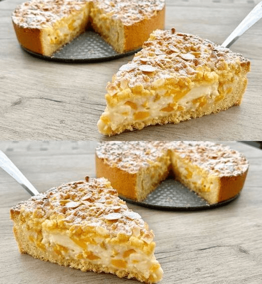 Nyårstårta är en traditionell festlig tårta som kombinerar en nötbas med färsk banan, grädde och nougat.