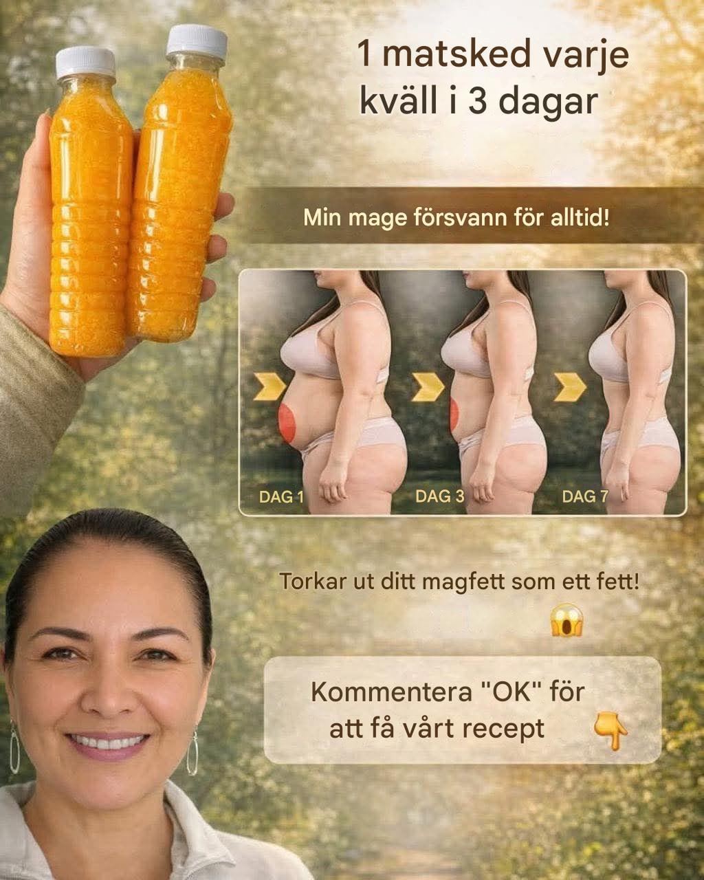 Den här bilden verkar visa ett recept på en “detoxdryck för platt mage” som påstår sig rengöra och fräscha upp kroppen på kort tid. Baserat på innehållet är det troligt att drycken innehåller ingredienser som stödjer matsmältningen, minskar uppblåsthet och eventuellt kan bidra till viktminskning under en kort period, till exempel 7 dagar.
