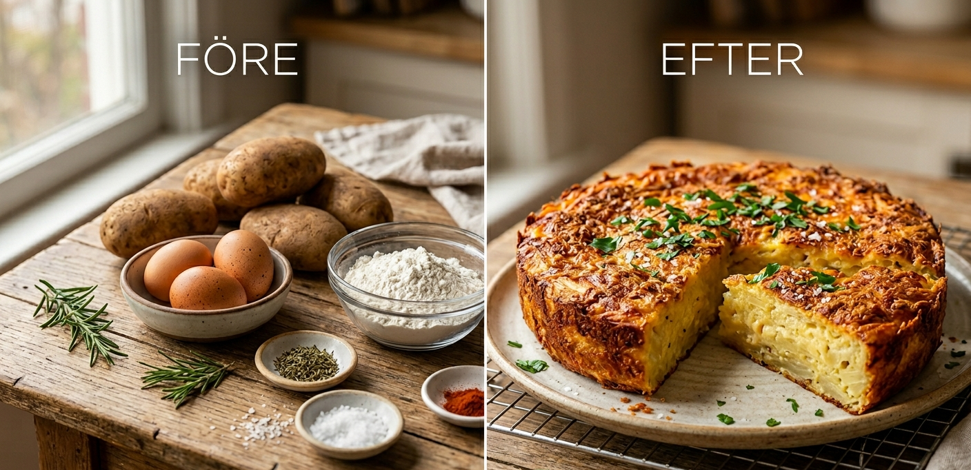 För det första är den otroligt enkel att göra. Du behöver bara några få ingredienser som ofta redan finns hemma – potatis, ägg, lite mjöl och kryddor.