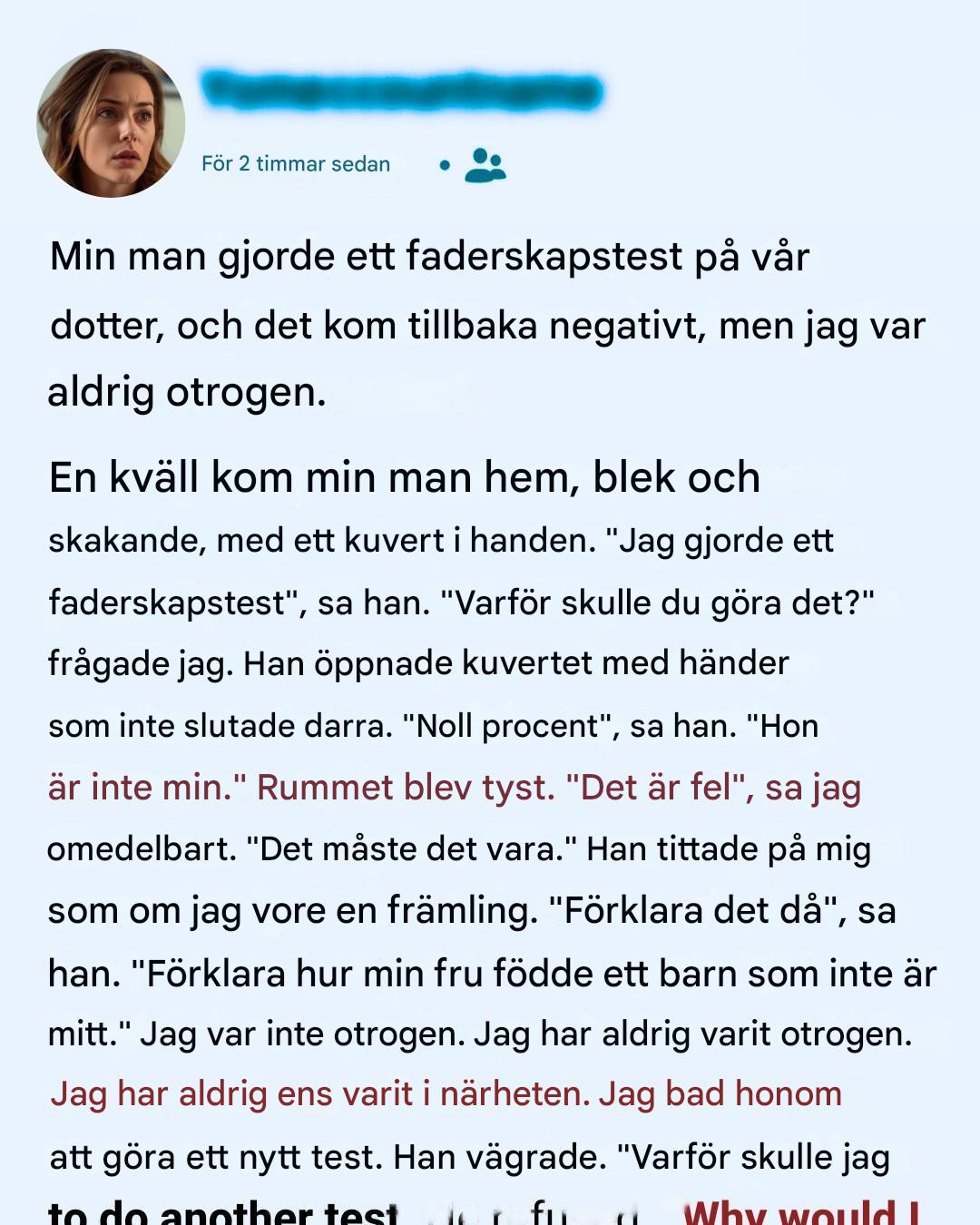 ”Förklara det då”, sa han. ”Förklara hur min fru födde ett barn som inte är mitt.”