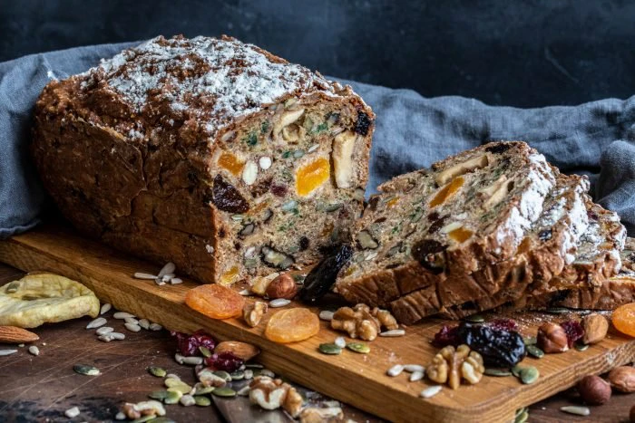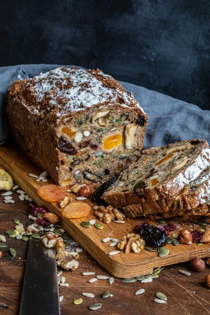 Saftigt gott bröd med fröer och torkad frukt