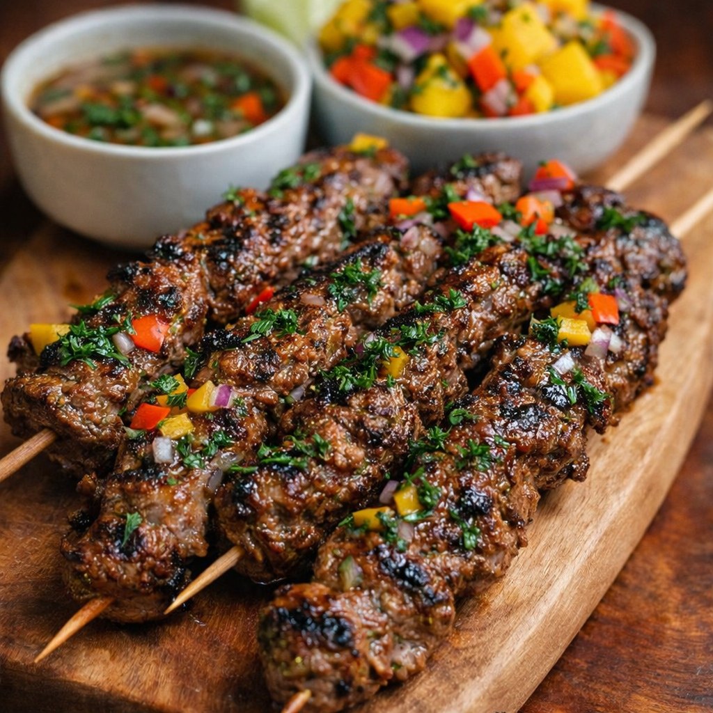 8️⃣ 8. **Avslutning och vila 🍋**: Ta bort kebaben från grillen och låt dem vila i 2–3 minuter på en skärbräda. Strö omedelbart över tärnad paprika och lök för krispighet och färg, och ringla över lite limesaft.