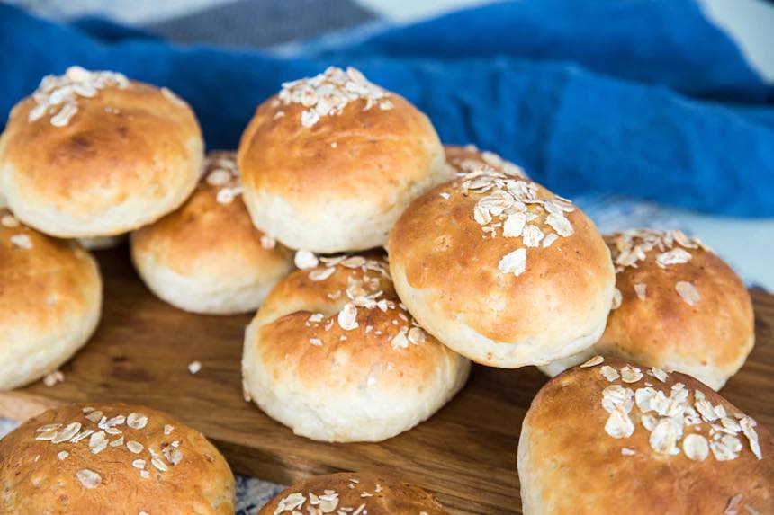8. Pensla bullarna med lite mjölk och strö över havregryn.