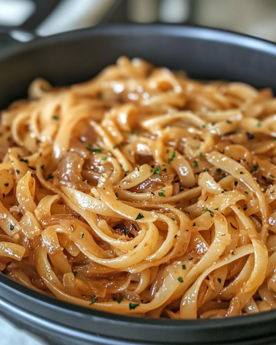 Karamelliserad lök ger en rik och djup smak till vilken rätt som helst, och när den tillagas långsamt blir den härligt söt och mör. Denna pasta med karamelliserad lök i långkok är en tröstande rätt som kombinerar den enkla elegansen hos karamelliserad lök med din favoritpasta. Receptet, som härstammar från italienska kulinariska traditioner där enkelhet är nyckeln, är perfekt för alla som vill skapa en rätt som är både mättande och full av söta smaker. Det är också ett utmärkt sätt att använda en långkokare, vilket gör det lättare att karamellisera stora mängder lök.