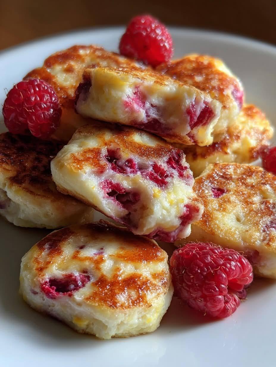 Vänd försiktigt ner hallonen (övermixa inte om du använder färska för att förhindra att de krossas).
