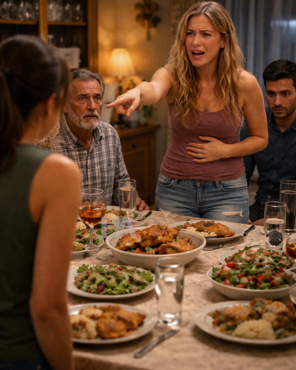 Det bara… slutade. Skedar. Tuggande. Klinket av is i glas. Till och med det mjuka surret från takfläkten verkade tystna, som om hela huset hade dragit sig tillbaka i skräck och gett soffan utrymme att andas. Du satt där, din hand frusen runt kniven. Du kände dig inte skyldig för att du inte hade gjort någonting. Du kände något värre. Du kände omedelbart skräck, den sorten som kommer när du inser att oskuld inte är rustning när människorna runt omkring dig redan har bestämt att ditt ansikte passar brottet. Lucia blinkade en, två gånger, som om hennes sinne hade träffat en vägg och studsat tillbaka. "Vad sa du just?" frågade hon. Renata började gråta. Inte osammanhängande gråt. Inte krossad, oorganiserad sorg. Det här var vackra tårar. Kontrollerade tårar. Den sorten som landade perfekt på hennes handryggar, och hennes axlar skakade på ett sätt som såg förödande, feminint och uppriktigt ut.