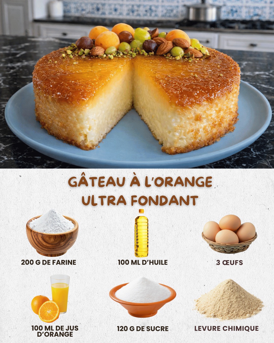 Denna ultrasaftiga apelsinsmak är ett mört, doftande och otroligt saftigt recept. Lätt att tillaga, den erbjuder en textur någonstans mellan en flan och en kaka, med en naturlig apelsinsirapsglasyr som gör den blank och oemotståndlig.