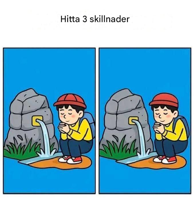 I de två bilderna av barnet vid fontänen är de tre skillnaderna följande: