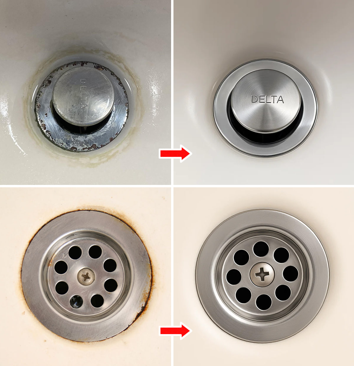 Orsaken till dessa fläckar är kalkavlagringar som avsätts av vatten och på vilka tvålrester och smuts samlas, vilket slutar med att fläcka den och skapa de där irriterande svarta glorierna.