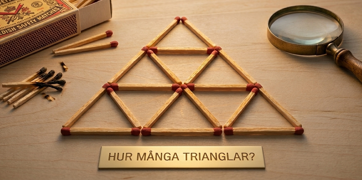 Många försöker snabbt räkna trianglarna och ger ett svar direkt. Tyvärr är det oftast fel. Varför? För att de flesta bara ser de uppenbara formerna och missar de dolda.