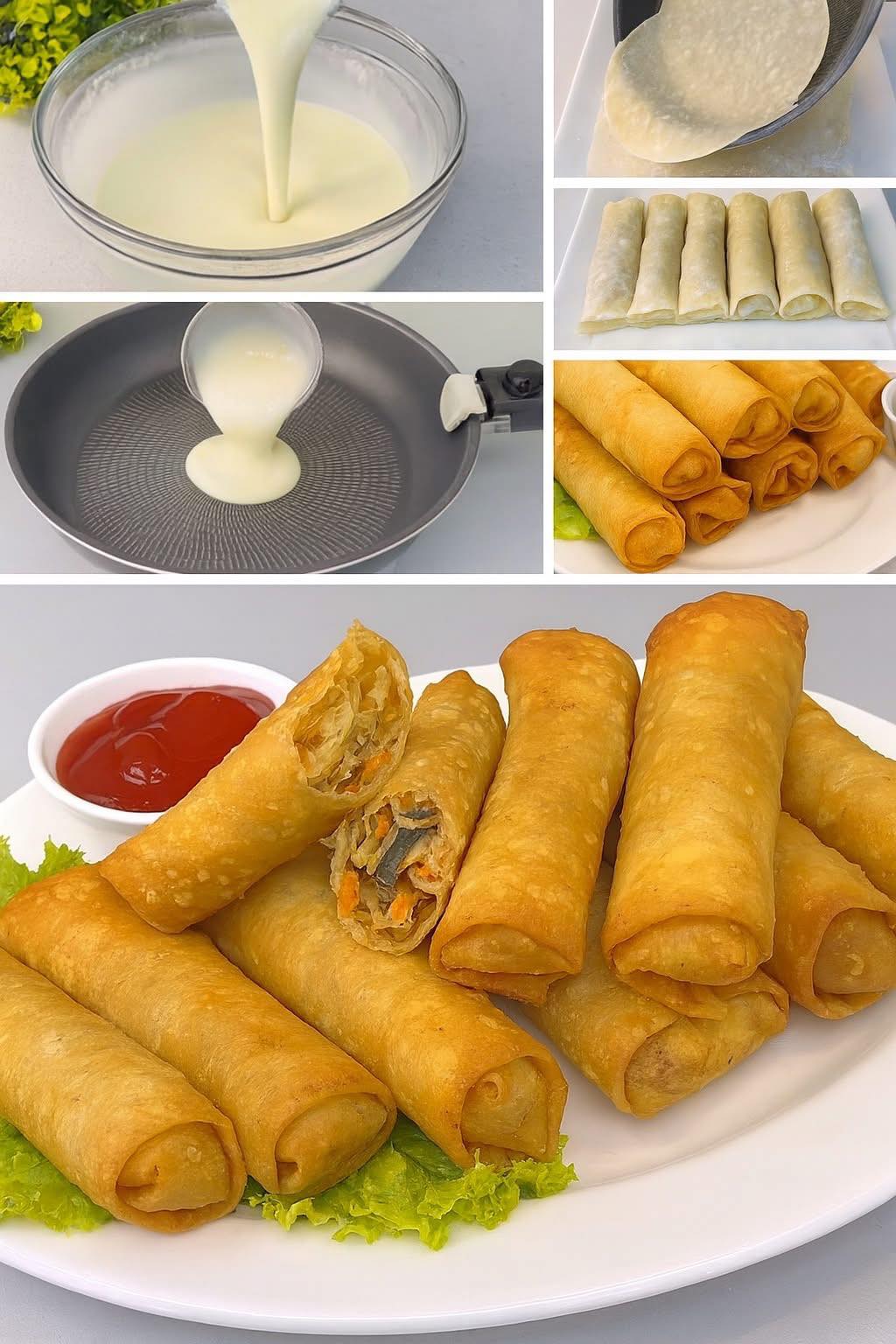 • Värm oljan och stek rullarna tills de är gyllenbruna och krispiga. • Låt rinna av på absorberande papper.