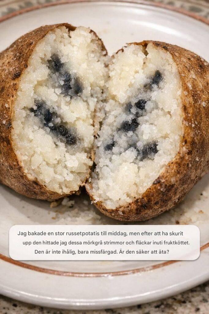Tänk dig att du förbereder en tröstande måltid genom att baka en stor russetpotatis, en av de där mångsidiga ingredienserna som kan förvandlas till en myriad av läckra rätter. Du har ägnat tid åt att se till att den är perfekt tillagad och ivrigt väntat på det fluffiga, ångande insidan. Men när du skär upp den möts du av oväntade mörkgrå strimmor och fläckar i det krämiga fruktköttet. Denna syn kan vara ganska oroande och väcker berättigade farhågor om huruvida potatisen är säker att äta.