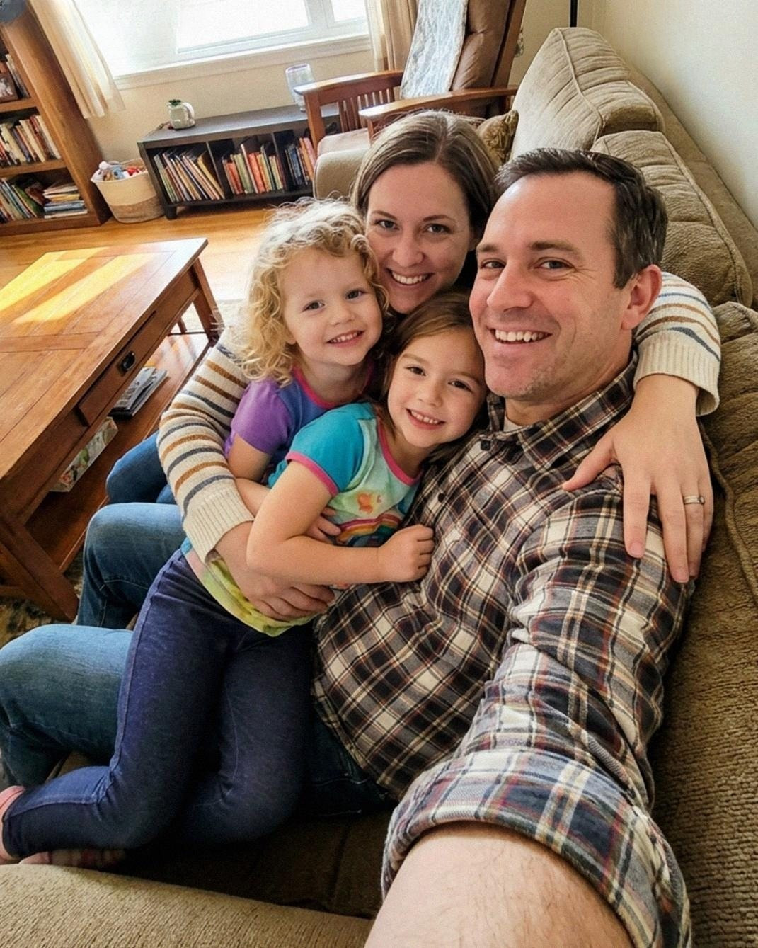 Flickorna var lätta att tycka om. Grace var skarp och nyfiken och ställde alltid frågor som om världen var skyldig henne svar. Emily var tystare. Först gömde hon sig bakom Daniels ben. En månad senare klättrade hon upp i mitt knä med en bilderbok som om hon alltid hade känt mig.