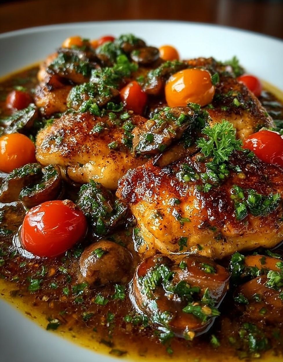 Kyckling Sauté Hunter's Style med Tomater är en traditionell fransk rätt, enkel och tröstande. Den kombinerar gyllene kyckling, doftande tomater och möra svampar i en fyllig sås. Detta recept kan tillagas på under en timme och kommer garanterat att glädja med sin fylliga smak.