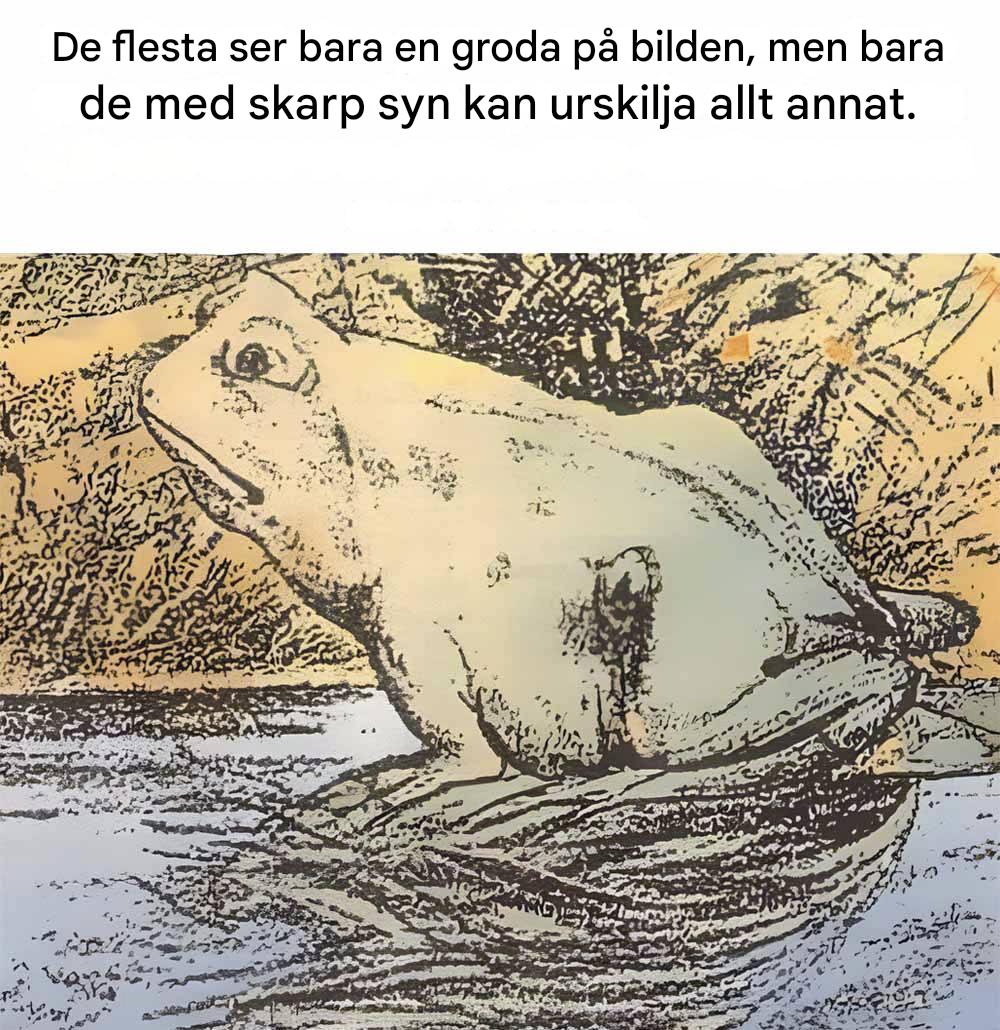 Det här är bilden som väcker stor uppståndelse på sociala medier: en till synes ordinär teckning av en groda som bjuder på en överraskning för den som tar sig tid att titta noga. Ett visuellt pussel som sätter hjärnan på prov… För under sitt ofarliga utseende döljer sig denna lilla amfibie en oväntad silhuett. Så, är du redo att anta utmaningen utan att fuska?