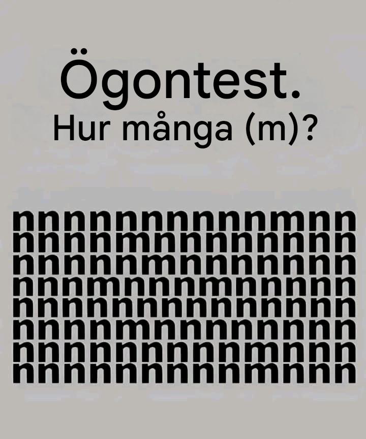 Internet är fyllt med visuella pussel och hjärngymnastik, och en av de nyaste utmaningarna att ägna allas uppmärksamhet är "Ögontestet" där deltagarna ombeds att lägga märke till hur många gånger bokstaven "m" förekommer i ett rutnät fyllt med "n".