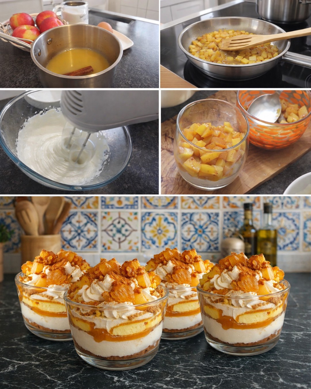 Karamelliserad äpple- och kaneltiramisu är en dekadent, krämig och väldoftande dessert som serveras i individuella glas. Inspirerad av professionella kockars presentationer kombinerar den sötman från smältande äpplen, fylligheten från mascarpone och krispigheten från speculooskakor för ett visuellt fantastiskt och utsökt resultat värdigt ett konditori.
