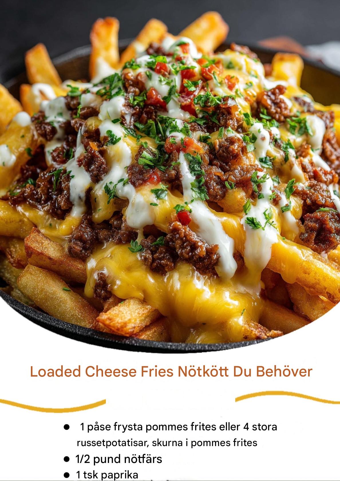 Loaded cheese fries med nötkött är ren komfort och alltid en succé på sammankomster eller på en fredagskväll när du behöver något extremt mättande och roligt att äta. De kombinerar krispiga pommes frites, fyllig nötfärs, smält cheddarost och färgglada toppings i en tallrik som alla kommer att dyka ner i.