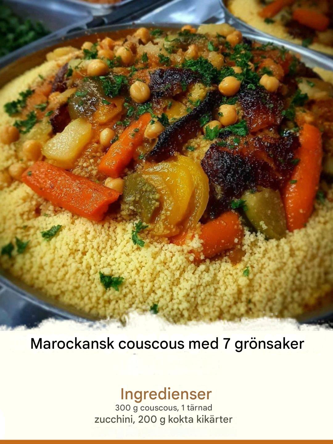 Denna marockanska couscous med 7 grönsaker är en riktig favorit för upptagna mammor som jag. På nolltid kan du laga en god och näringsrik rätt som hela familjen kommer att älska. De färgglada grönsakerna och kryddorna värmer hjärtat, medan receptets enkelhet gör att du kan spendera mer tid med dina nära och kära. Vem kan motstå en sådan njutning?