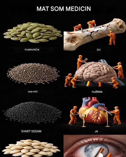 De kombinationer som illustreras här demonstrerar denna naturliga synergi. Pumpafrön är kraftfulla benstärkare rika på magnesium, zink och fosfor, vilka fungerar som ett specialiserat reparationsteam. Dessa mineraler hjälper till att fylla mikrofissurer och stärka skelettstrukturen, vilket främjar densitet och motståndskraft över tid. Chiafrön fungerar som ett djuprengörande hjärnteam. Rika på omega-3-fettsyror och antioxidanter hjälper de till att rensa mental dimma, minska inflammation och stödja nervbanor för förbättrad fokus och kognitivt skydd. Svart sesam fungerar som ett hjärtrengörande team; dess kraftfulla sesamföreningar och hälsosamma fetter hjälper till att minska inflammation, förbättra cirkulationen och eliminera avlagringar för att upprätthålla en stark och effektiv kardiovaskulär funktion.