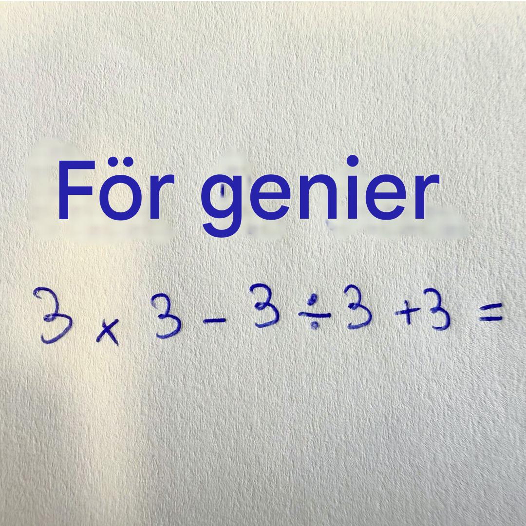 Lös steg för steg: 3 × 3 + 3 ÷ 3 – 3