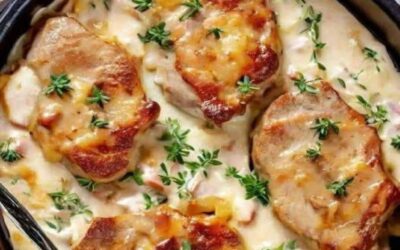 Bräserade fläskkotletter och scalloped potatis är en rejäl och tröstande rätt som kombinerar den salta godheten hos sydstatsinspirerade bräserade fläskkotletter…