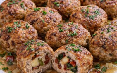 Köttfärsfärs fyllda med ost, spenat och torkade tomater