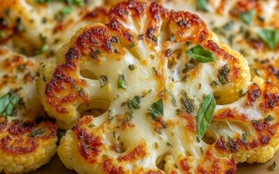 Ugnsbakade blomkålsbiffar med mozzarella Ingredienser: 1 stor blomkål 150 g mozzarella (riven) 3 msk olivolja 2 vitlöksklyftor (pressade) salt och…