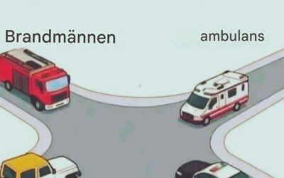I en korsning där brandbilar, ambulans, polisbilar och ett civilt fordon är närvarande uppstår ofta en fråga: vem har egentligen…