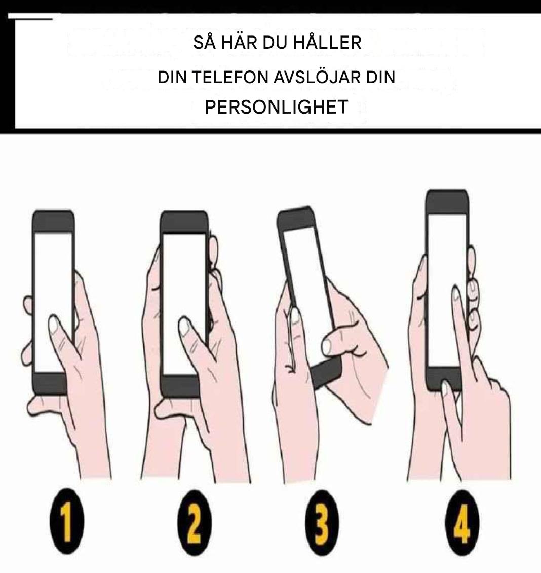 Hur du håller din telefon avslöjar dolda aspekter av din personlighet. Personlighetstest baserat på din telefongreppstil: Hur du håller din telefon säger mycket om din personlighet. Håller du den med båda händerna, båda tummarna? Med bara en tumme? Med ena handen och pekfingret på den andra?