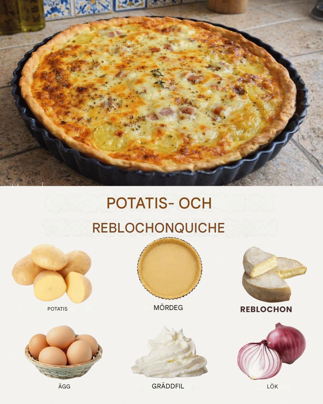 Potatis- och Reblochon-quiche är ett generöst, detaljerat och lättförståeligt recept, inspirerat av de bästa kockarnas matlagningswebbplatser. Varje steg förklaras tydligt för en enkel, snabb och lyckad tillagning, även för nybörjare.
