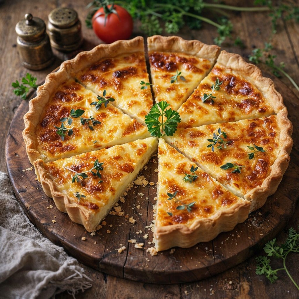 8️⃣ 8. **Vila och skär rent** 🍽️: Låt den vila i 10 minuter utanför ugnen. Denna vila stabiliserar fyllningen för rena skivor och en mindre ömtålig botten. Servera varm eller i rumstemperatur, med några kvistar färsk timjan om så önskas.