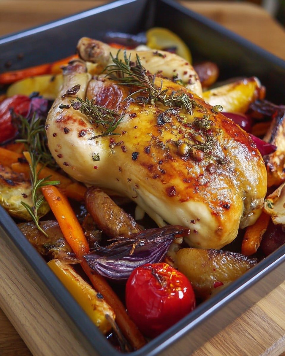 4. Lägg kycklingen ovanpå grönsakerna och krydda efter smak.