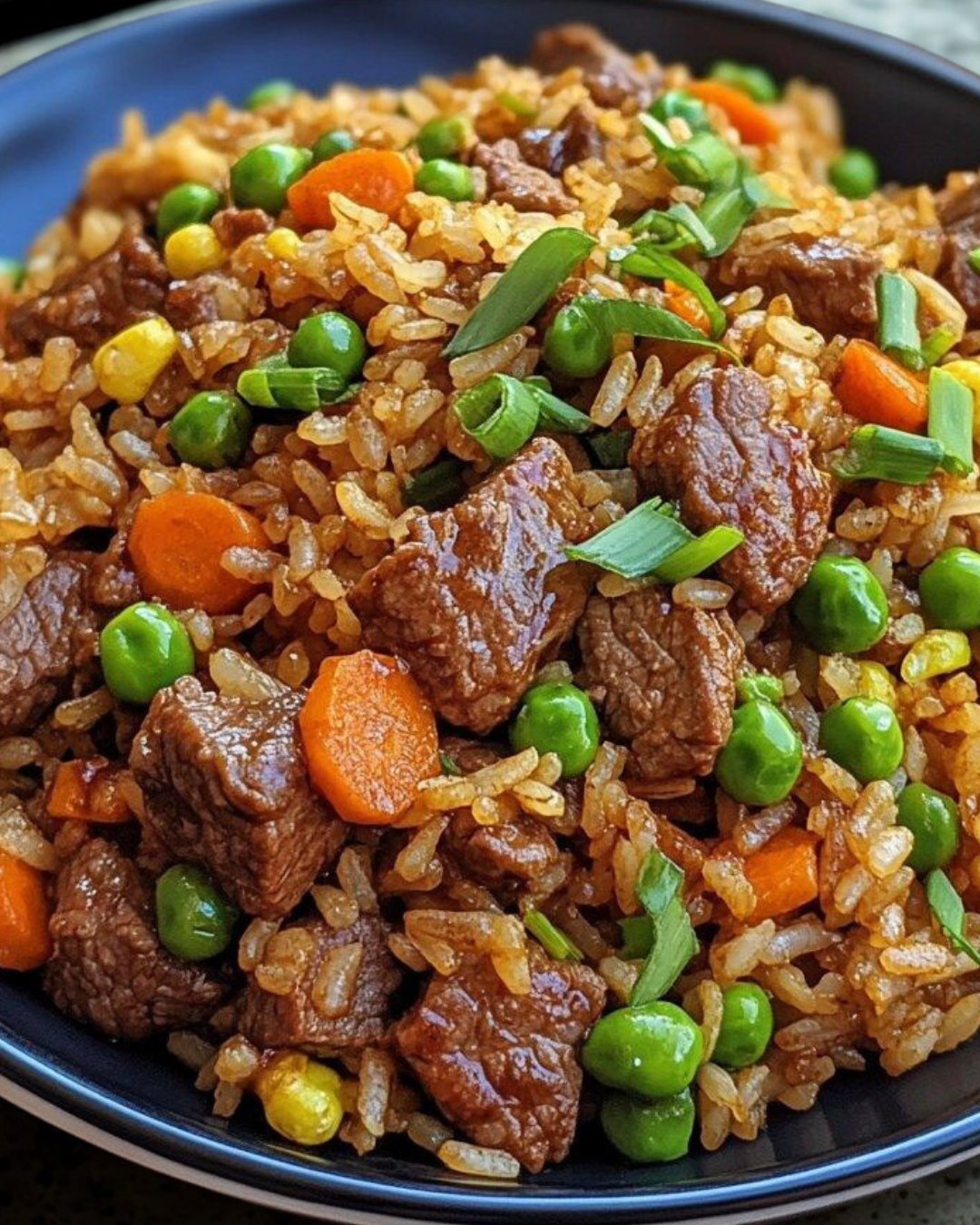 Stekt ris med nötkött är ett asiatiskt risrecept som kombinerar möra strimlor av nötkött, väldoftande ris och krispiga grönsaker i en smakrik sojasås. Denna snabba asiatiska rätt är klar på cirka 30 minuter och är perfekt för en vardagsmiddag eller en matsäck. Med ett ugnsbakat alternativ för en gratinerad touch imponerar detta stekta ris med nötkött och grönsaker med sin enkelhet och djärva smaker. Servera med en gurksallad eller vårrullar för en komplett måltid.