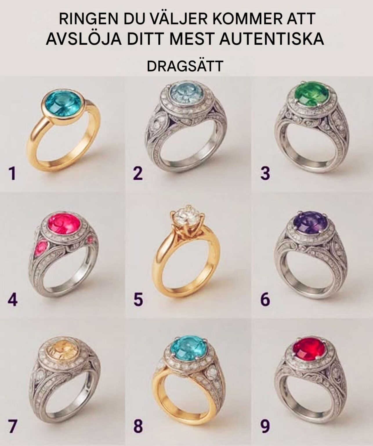 Har du någonsin lagt märke till hur vissa ringar nästan verkar "ropa" på dig från ett skyltfönster? Som om deras färg, deras gnistra eller deras form väcker något djupt personligt. Vi tror ofta att det helt enkelt handlar om estetisk attraktion... men det är inte bara det. Bakom varje preferens finns en liten historia, en personlig resonans, en subtil reflektion av vad som utgör din karaktär. Så, vilken skulle du instinktivt välja? Och framför allt, vad skulle den säga om dig? Redo att vara med? Du kanske blir överraskad.