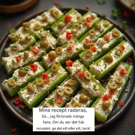 🌿 Selleristänger fyllda med färskost och oliver 🧀