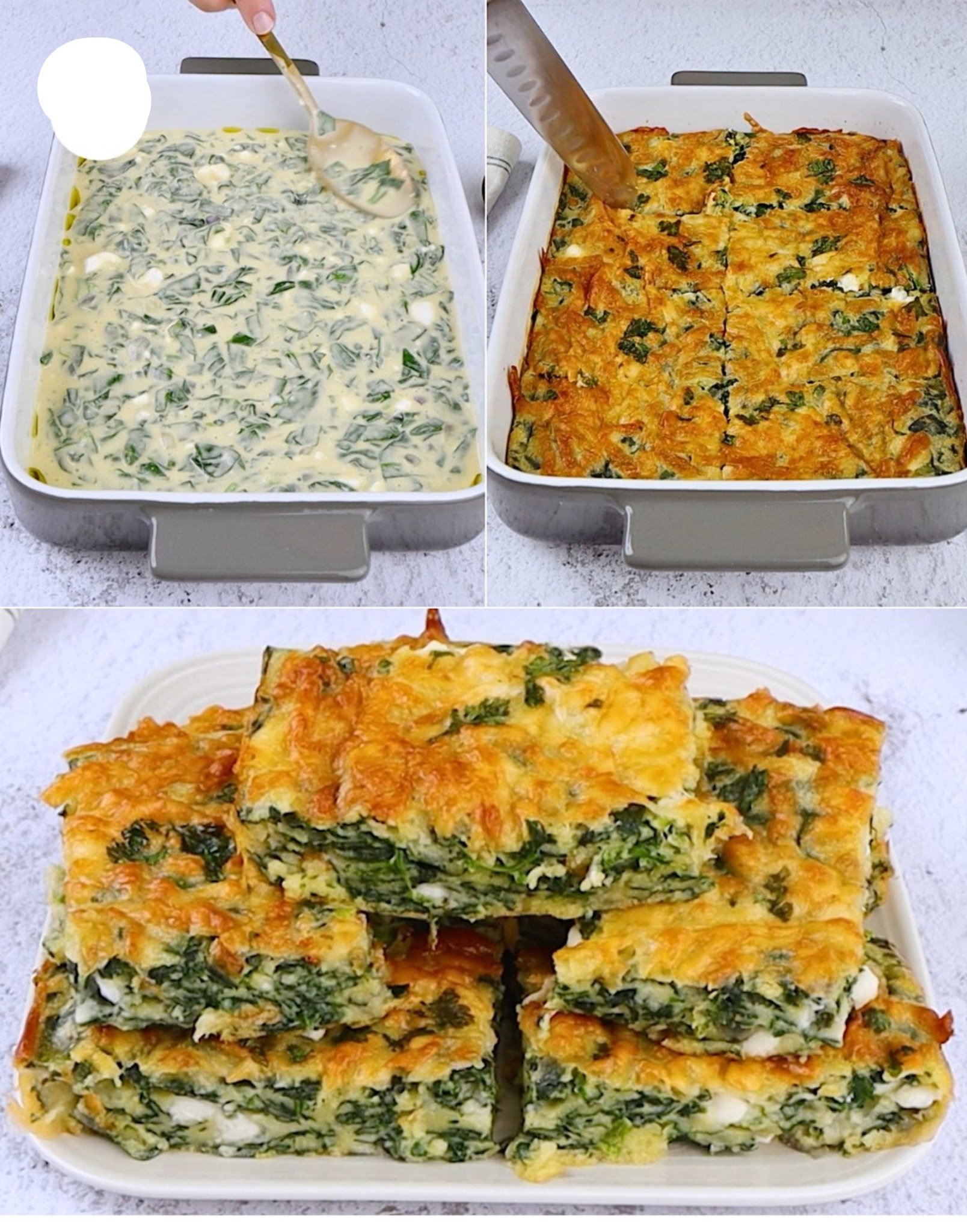 Se till att du inte övergräddar spenatpajen, annars kan den verka ganska torr i konsistensen. För att se när den är klar ska den vara gyllenbrun på toppen och se stel ut.
