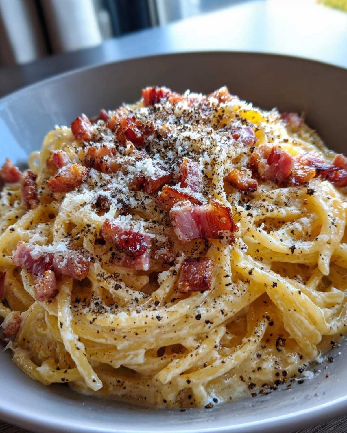 Spaghetti Carbonara är en klassisk italiensk pastarätt som har sitt ursprung i Rom. Den har en krämig sås gjord på ägg, Pecorino Romano-ost, guanciale och svartpeppar.