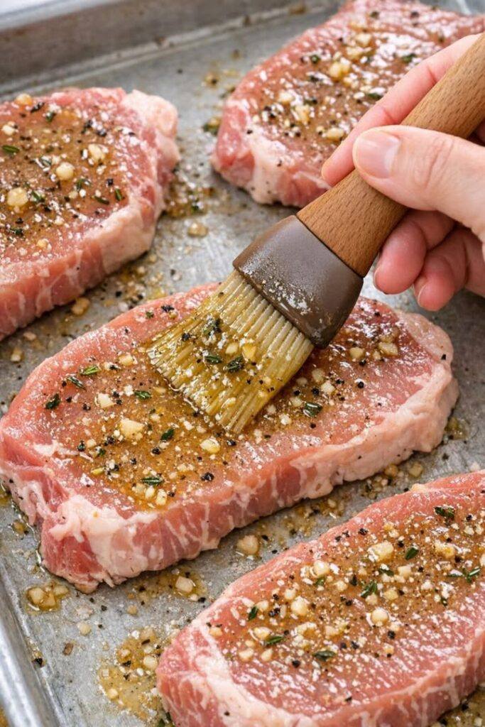 Detta är ett av de där vardagsrecepten som ser nästan för enkla ut för att vara goda – tills du smakar det. Fläskkotletterna penslas med ett enda glansigt lager gjord på honung, Dijon-senap, citronsaft, vitlök, timjan, salt och svartpeppar, och rostas sedan på en bakplåt. Smakerna lutar åt klassisk fransk bistro – söta, skarpa och örtiga – men tekniken är ren praktisk mellanvästernsk hemlagning: en stekpanna, minimal kladd och middag på bordet på under 30 minuter.