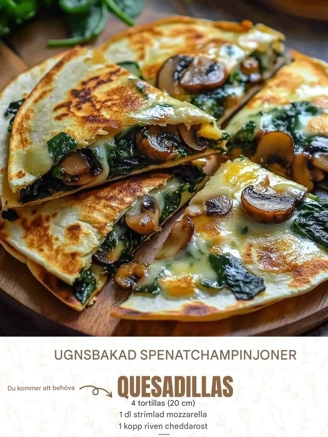 Njut av dina läckra och ostiga spenat- och svampquesadillas!
