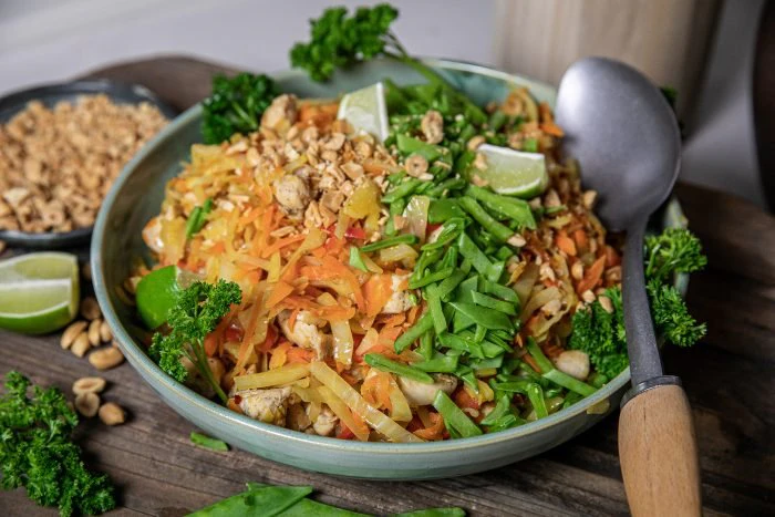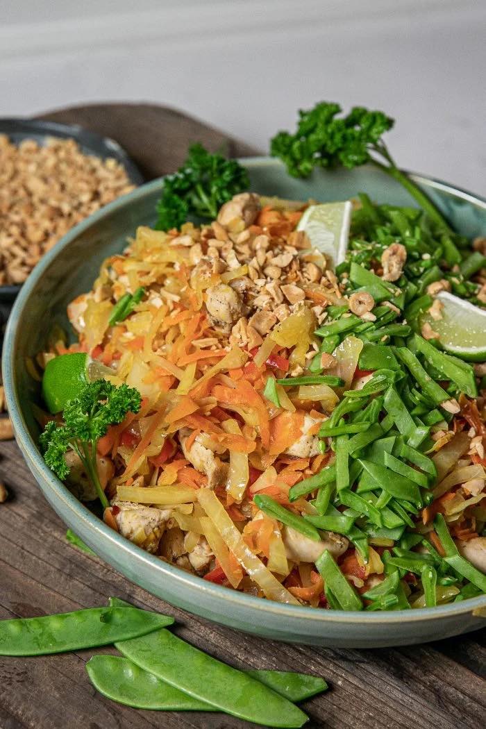 Jag hackade lite sockerärtor och jordnötter och hade på, samt lite färsk lime för lite härlig syra.